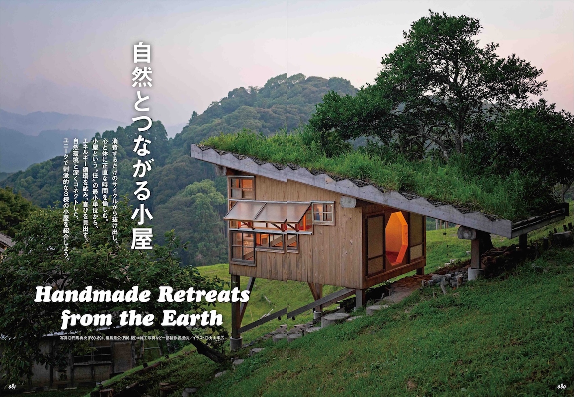 巻頭記事は「庭に小屋を作ろう 暮らしを変えた手作り小屋の実例集」と題し、家主が自ら庭に作った9棟の小屋を紹介しています。