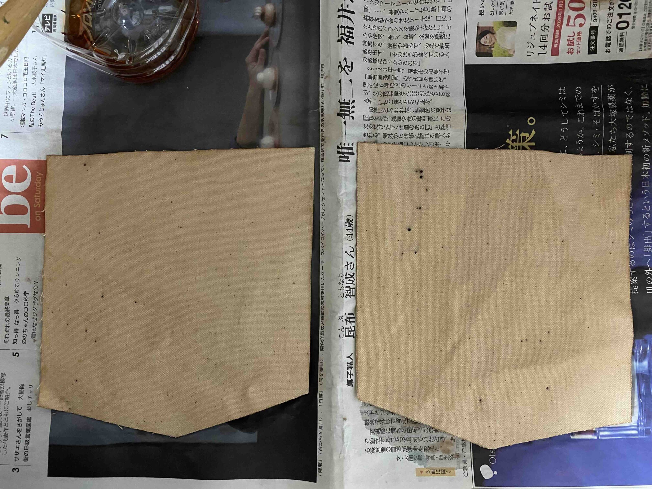 編集部BLOG ワレワレハ「縫うオヤジ団」ダ ドゥーパ! 編集部 12月 13, 2025 パラフィン加工済みの生成り色の帆布を柿渋で染めてみる。 初っ端はパラフィン(蝋)に少しはじかれ気味だったけど、なんかイケそうな感じ。 さてさて何を染めているのかというと、15年くらい履いて財布が落ちそうなほどに破れてしまったワークパンツ(GUNG HO)の新しい尻ポケット。 ずっとやりたかった布の柿渋染めをようやく経験できたのだが、尻ポケットの仕上がりやいかに? ← 小屋を作る本2026 ワレワレハ「縫うオヤジ団」ダ その2 →